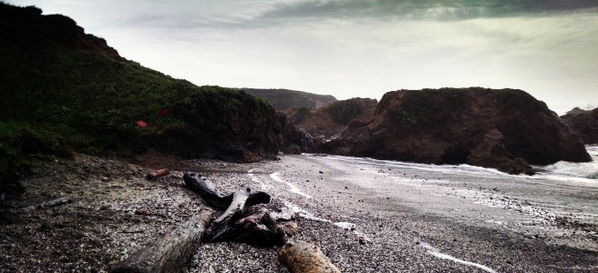 There was a small hole in the heel, with something shaking inside, causing me to sound like a maraca. After prying it open, a small piece of smooth beach glass fell out. I can’t really say for sure where it came from, by my guess is that it came from Fort Bragg.